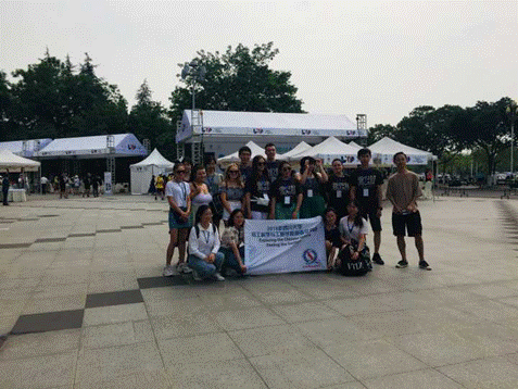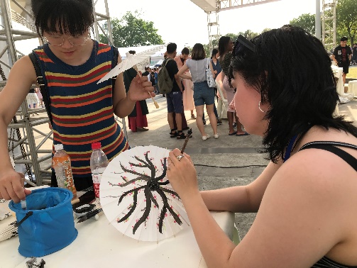 開幕式活動從下午開始預(yù)熱,輕工科學(xué)與工程學(xué)院的志愿者同學(xué)們帶領(lǐng)來自東西伯利亞國立科技與管理大學(xué)和英國伯明翰城市大學(xué)的留學(xué)生參與了體育館外“國際課程周”的創(chuàng)新創(chuàng)業(yè)展和互動體驗活動,并介紹了川大的特色、歷史以及四川的本地的風(fēng)俗和文化。