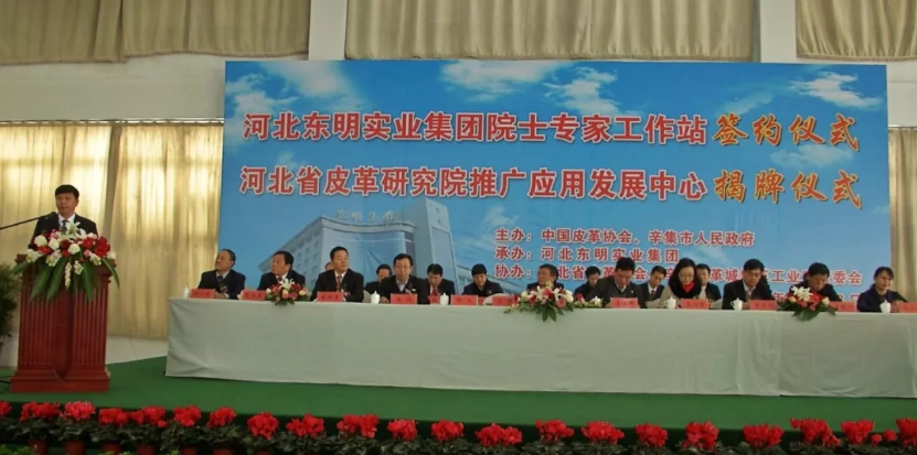 2017年12月23日,河北東明實業集團院士專家工作站簽約儀式、河北省皮革研究院推廣應用發展中心揭牌儀式在河北省辛集市舉行。本次活動由中國皮革協會、辛集市人民政府主辦,河北東明實業集團承辦,河北省皮革協會、辛集皮革城制革工業區管委會協辦。