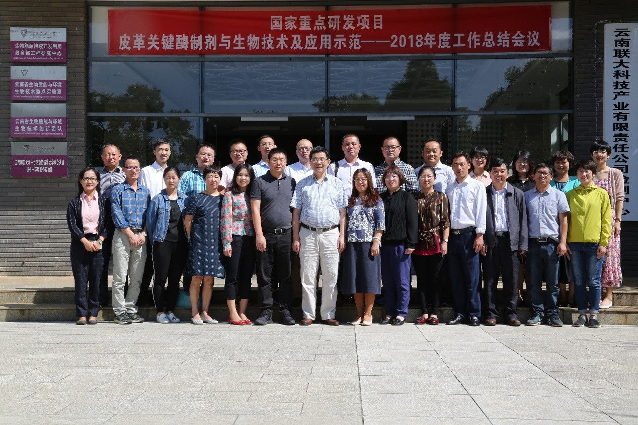 2018年8月18-19日,由四川大學承擔的國家重點研發(fā)計劃項目“皮革關鍵酶制劑與生物技術及應用示范(2017YFB0308400)”2018年度會議在云南師范大學呈貢校區(qū)生物能源持續(xù)開發(fā)利用教育部工程研究中心順利召開。中國輕工業(yè)聯(lián)合會李永智處長出席會議,來自四川大學、云南師范大學、齊魯工業(yè)大學、天津科技大學、江南大學、四川達威科技股份有限公司、山東隆科特酶制劑有限公司、浙江通天星集團股份有限公司、徐州南海皮廠有限公司等項目參與單位的項目任務負責人、財務負責人及部分項目骨干成員參加會議。