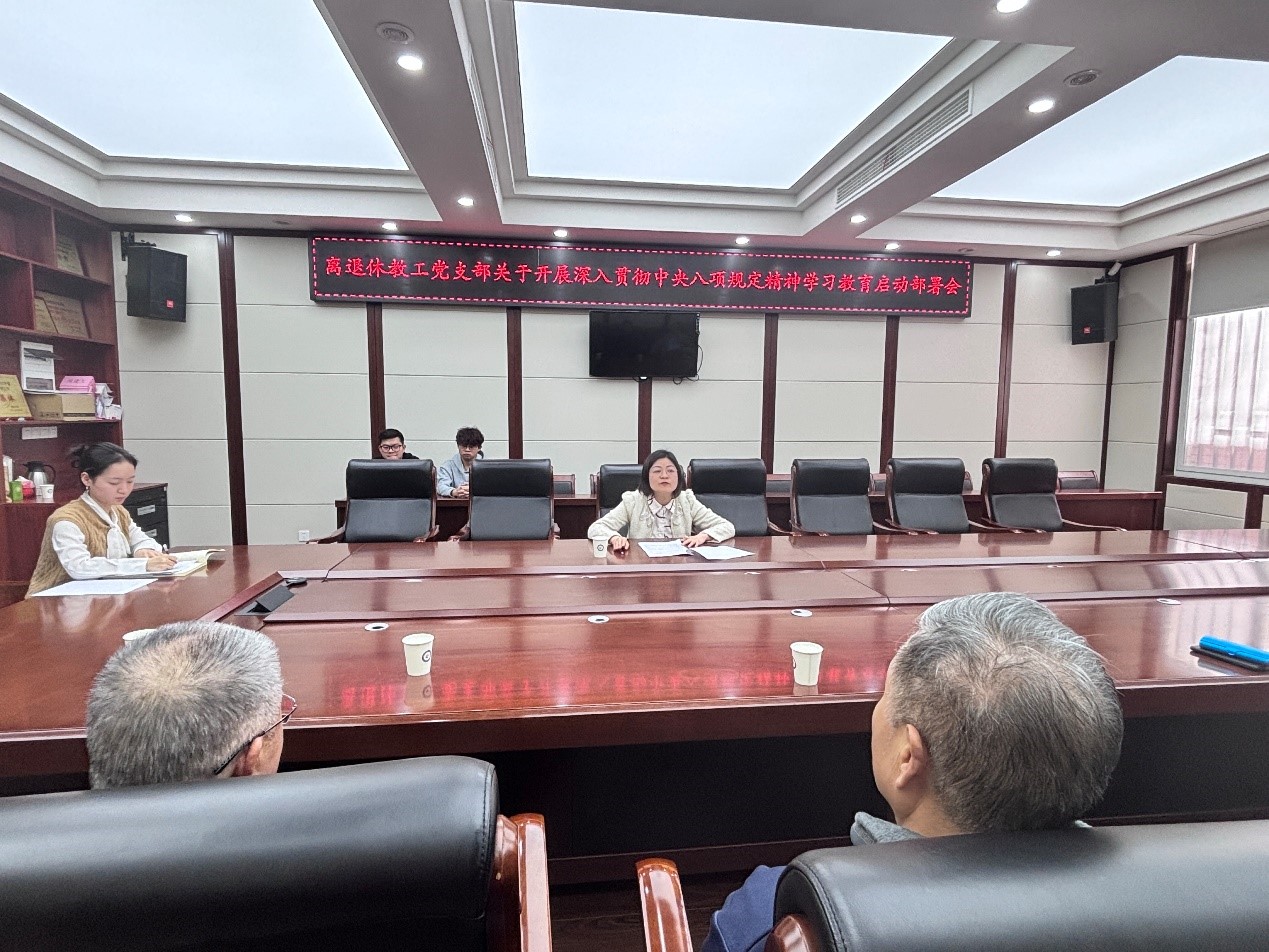 根據(jù)校院工作安排,2025年3月24日下午,離退休教工黨支部在紡工附樓205,召開(kāi)關(guān)于深入貫徹中央八項(xiàng)規(guī)定精神學(xué)習(xí)教育啟動(dòng)部署會(huì),黨支部書(shū)記李慧主持會(huì)議。