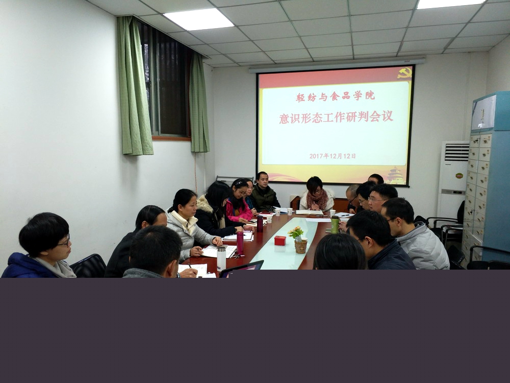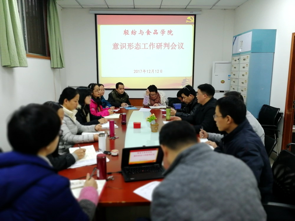 2017年12月12日下午,學院在紡工附樓黨辦會議室召開了本學期意識形態工作形勢研判會,學院中層班子成員、黨委委員、教工黨支部書記、系所主要負責人、科級干部等參加了本次會議。