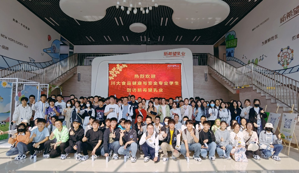 本次“輕訪學(xué)”第二站是位于郫都區(qū)的新希望乳業(yè)有限公司。新希望乳業(yè)隸屬于新希望集團(tuán),新希望集團(tuán)是中國(guó)農(nóng)業(yè)產(chǎn)業(yè)化國(guó)家級(jí)重點(diǎn)龍頭企業(yè)。公司兩位講解老師首先為同學(xué)們先后介紹了新希望集團(tuán)的歷史、農(nóng)牧與食品、化工與資源、地產(chǎn)與基礎(chǔ)設(shè)施、金融與投資四大產(chǎn)業(yè)集群。隨后,兩位講解老師帶領(lǐng)同學(xué)們參觀了新希望研發(fā)中心和干凈整潔的園區(qū),錯(cuò)綜復(fù)雜的乳品輸送管道映入眼簾,通過(guò)老師們系統(tǒng)全面的講解,同學(xué)們了解到新希望乳制品產(chǎn)業(yè)發(fā)展歷程以及乳制品加工技術(shù)。最后,四川新希望乳業(yè)有限公司張宗元副總經(jīng)理與同學(xué)們進(jìn)行了面對(duì)面交流,鼓勵(lì)同學(xué)們認(rèn)真學(xué)習(xí)專(zhuān)業(yè)知識(shí),并歡迎同學(xué)們畢業(yè)后為加入新希望團(tuán)隊(duì)。