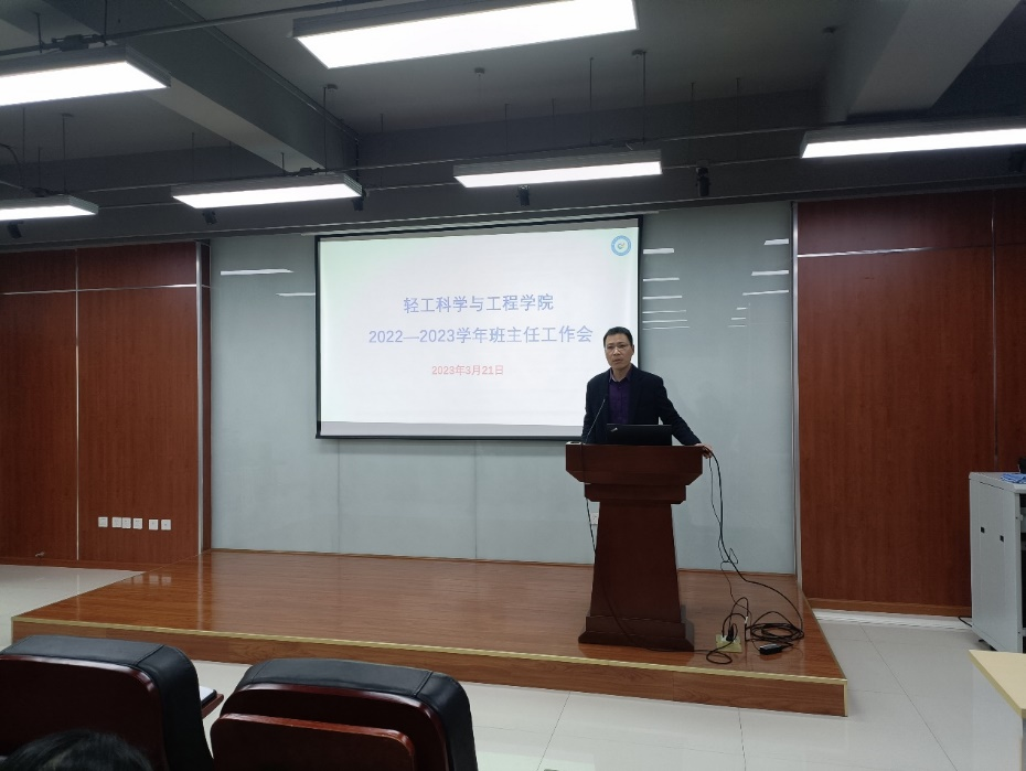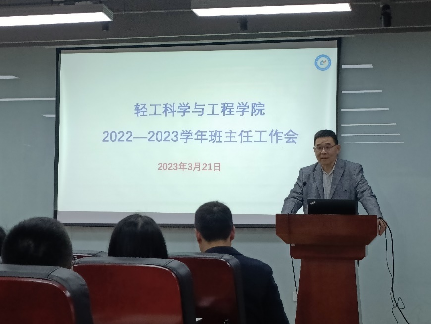 其次,彭必雨院長從班主任制度的產生過程、班主任工作對學院全局工作的重要性以及如何做好班主任工作三個方面進行了講話。彭院長指出,學生是學院的重要組成部分,學生工作是學院工作的重中之重,班主任是做好學生工作的重要力量。因此,希望班主任在開展工作時將學生作為自己的子女、弟弟妹妹一樣認真對待,用心投入,讓每一個輕工學院的學生在大學期間都能得到老師們的精心呵護與精細指導。同時,班主任工作還應根據當代大學生的特點,重點引導大一學生樹立目標、大二學生打好基礎、大三學生綜合發展、大四學生追求卓越,形成一種積極向上、陽光自信并全面發展的濃厚氛圍。