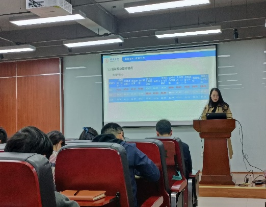 隨后,本科各年級輔導員分別對上學期期末考試成績、該年級學生學習情況以及本學期在學業上需各位班主任重點關注的工作向全體班主任進行了介紹。尤其是結合近期畢業生的畢業資格審查、創新學分申報、學生深造、就業以及低年級學生的學風建設等情況進行了全面分析,并提出了各年級的重點工作思路,希望得到班主任老師們的大力支持與協同推進。