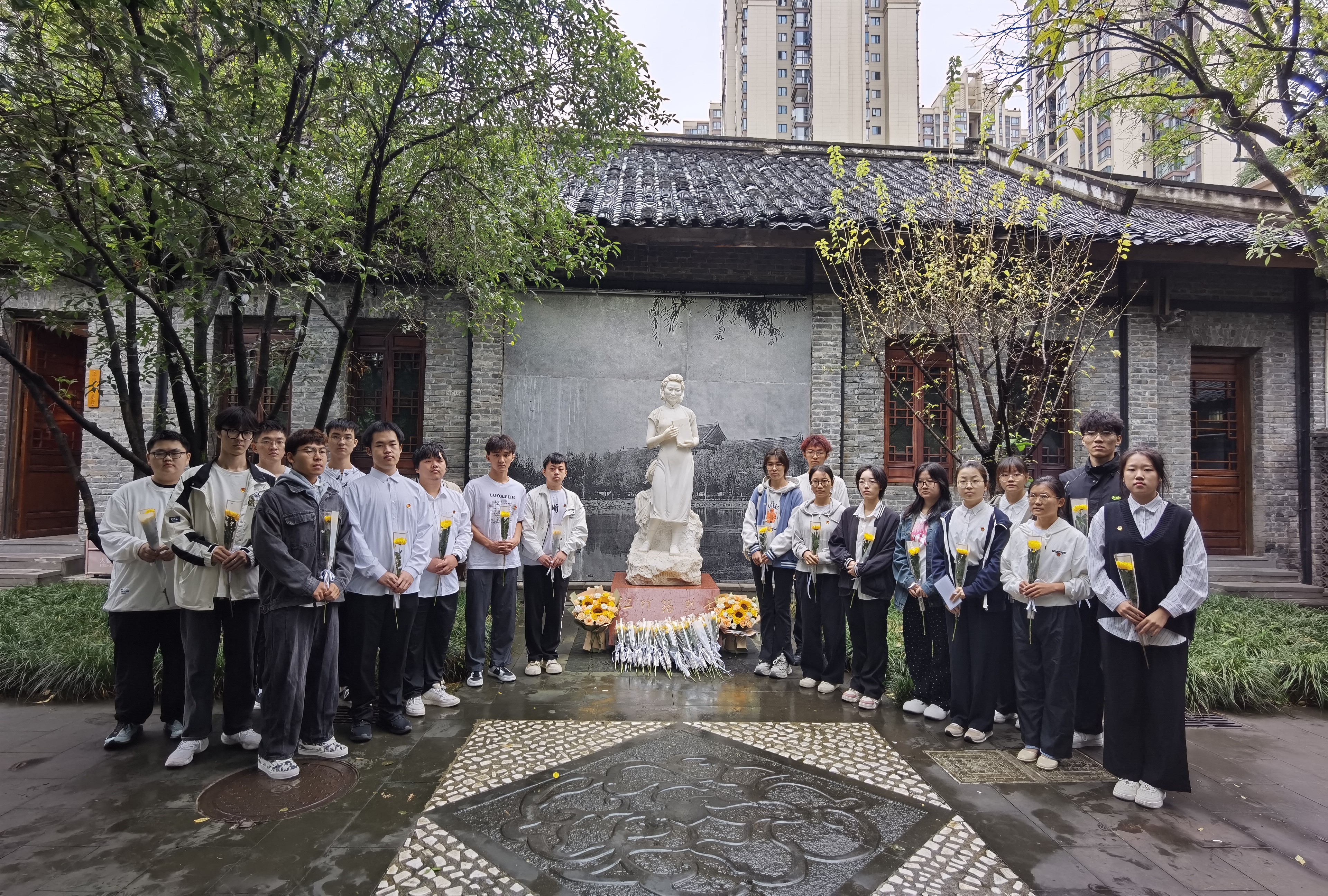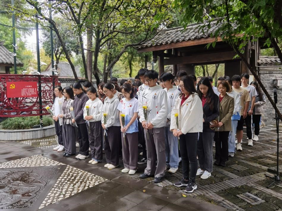 最后,師生們依次向江姐塑像敬獻(xiàn)鮮花,鮮花寄托著無限的敬意與感激。活動(dòng)在參觀江姐紀(jì)念館中圓滿結(jié)束,師生們通過深入了解革命先輩的光輝事跡,進(jìn)一步激發(fā)了對(duì)歷史的思考與對(duì)未來的憧憬。