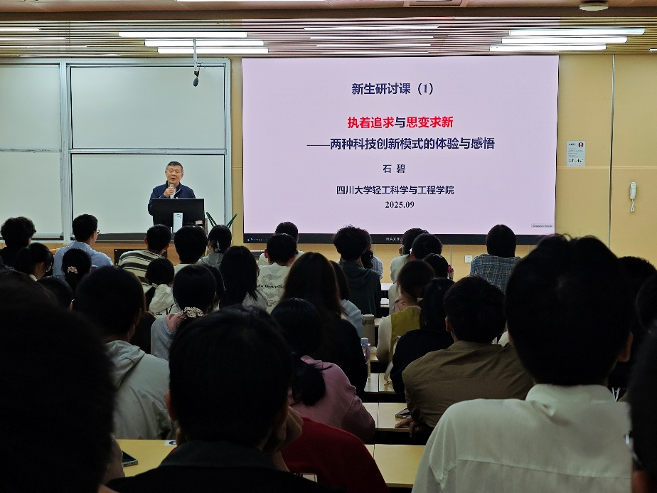 9月22日,輕工科學與工程學院在江安綜合樓C207為2025級新生量身打造的新生研討課隆重開啟,由石碧院士親臨現(xiàn)場,現(xiàn)身說法,生動詮釋了科學研究的執(zhí)著追求與創(chuàng)新精神,聲情并茂、啟迪開智。