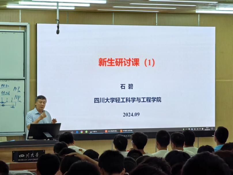 9月18日晚,為激勵新生們樹立遠大志向,勇攀科學高峰,石碧院士在江安綜合樓C307為2024級輕工科學與工程學院本科新生上了一節(jié)意義非凡的新生研討課。