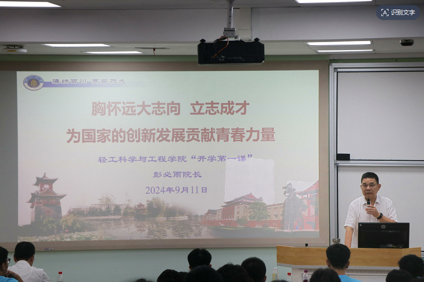 為深入貫徹黨的二十大精神,全面貫徹黨的教育方針,踐行社會主義核心價值觀,落實立德樹人根本任務,做好2024級本科新生入學教育工作,2024年9月11日下午,彭必雨院長在江安校區第一教學樓B307教室以《胸懷遠大志向、立志成才,為國家的創新發展貢獻青春力量》為主題向2024級全體本科新生講授開學第一課。