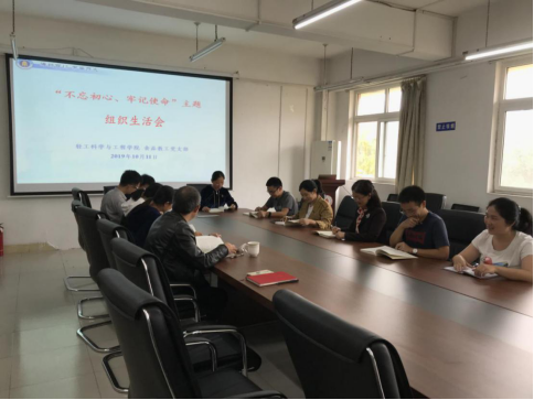 為扎實(shí)開展好“不忘初心、牢記使命”主題教育工作,2019年10月11日下午,輕工科學(xué)與工程學(xué)院 食品教工支部召開了以“不忘初心、牢記使命”為主題教育的組織生活會。呂遠(yuǎn)平書記將本次主題教育的根本任務(wù)、具體目標(biāo)及重點(diǎn)措施傳達(dá)給全體黨員同志。老師們集中學(xué)習(xí)了《習(xí)近平關(guān)于“不忘初心、牢記使命”重要論述選編》,觀看了習(xí)近平總書記在慶祝中華人民共和國成立70周年大會上發(fā)表的重要講話和國家勛章、國家榮譽(yù)稱號頒授儀式上的重要講話,學(xué)習(xí)了《鑄就輝煌的教育道路——寫在中華人民共和國成立七十周年之際》《教育部關(guān)于追授于瑾同志“全國優(yōu)秀教師”榮譽(yù)稱號的決定》。老師們就學(xué)習(xí)內(nèi)容結(jié)合實(shí)際工作展開了豐富的討論,一致認(rèn)為此次組織生活會主題鮮明、內(nèi)容豐富、效果明顯,是一次理論學(xué)習(xí)的再提升、能力素質(zhì)的再充電。