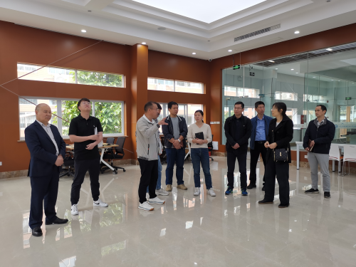 圖2 嘉賓們參觀生態皮革工業互聯網研究中心