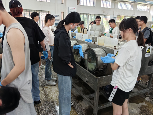 2020級輕化工程專業本科生正在進行兔皮鞣制實驗