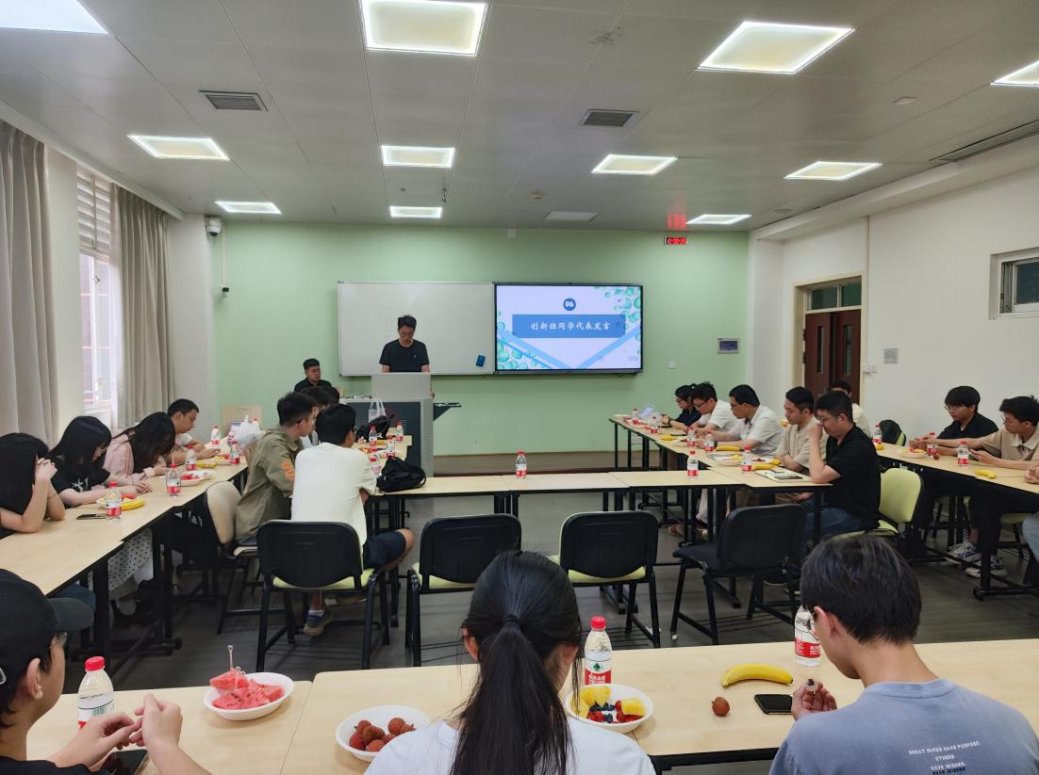 隨后,創(chuàng)新班代表柯濤同學(xué)講述了自己從進(jìn)入創(chuàng)新班至今,一路上的收獲與感悟,并表達(dá)了對(duì)學(xué)院以及老師們的感謝,激起了同學(xué)們的共鳴。