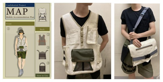 葉千慈同學(xué)因疫情原因只能在線完成答辯。她的畢業(yè)設(shè)計(jì)作品是在家里制作完成,先做樣衣改進(jìn)后完成成衣。其畢業(yè)設(shè)計(jì)主題為移動(dòng)烏托邦M.A.P,利用服裝作為變形的媒介,變幻出出行和居住所需的物件,如背包﹑帳篷和睡袋等,實(shí)現(xiàn)一衣多用。