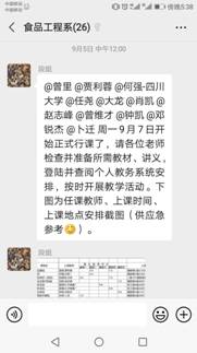 正式行課前一周,本科教務員通過短信、QQ群等方式提醒任課老師做好上課準備。通知各系教學系主任、教研室主任開展自查,督促任課老師做好新學期教學準備工作。學生輔導員及時統計學生到校情況,督促學生做好上課準備,學院本科教務員將不能按時返校的學生信息發送給相關課程老師,提醒老師做好相關學生的線上教學安排。