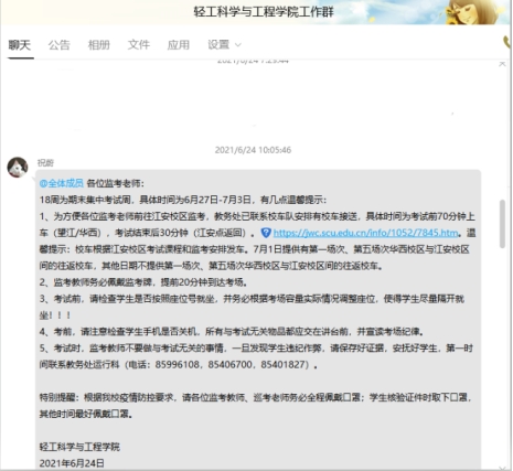 正式考試之前,本科教務(wù)員通過(guò)短信、QQ群等方式提醒監(jiān)考老師監(jiān)考注意事項(xiàng)。