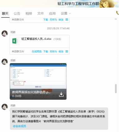 圖2.學院將不能按時返校的學生信息發送給相關課程老師