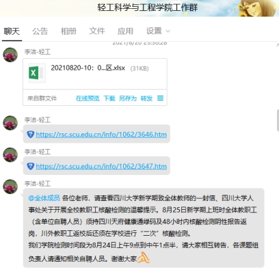 圖1.學院提醒老師配合學校疫情防控做好核酸檢測工作