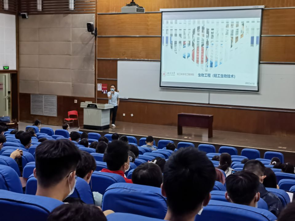 為加強四川大學生物工程(輕工生物方向)專業建設,增強學生學習主體性意識及導師引導責任意識。 2022年4月10日上午,于江安校區綜合樓C407報告廳,輕工生物技術教研室面向2021級新生進行生物工程專業宣講活動。