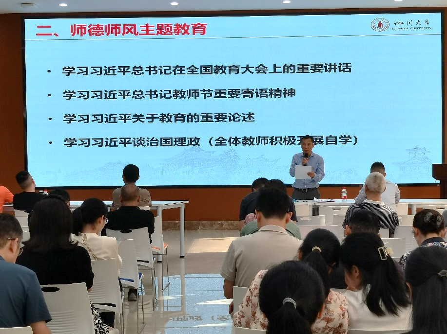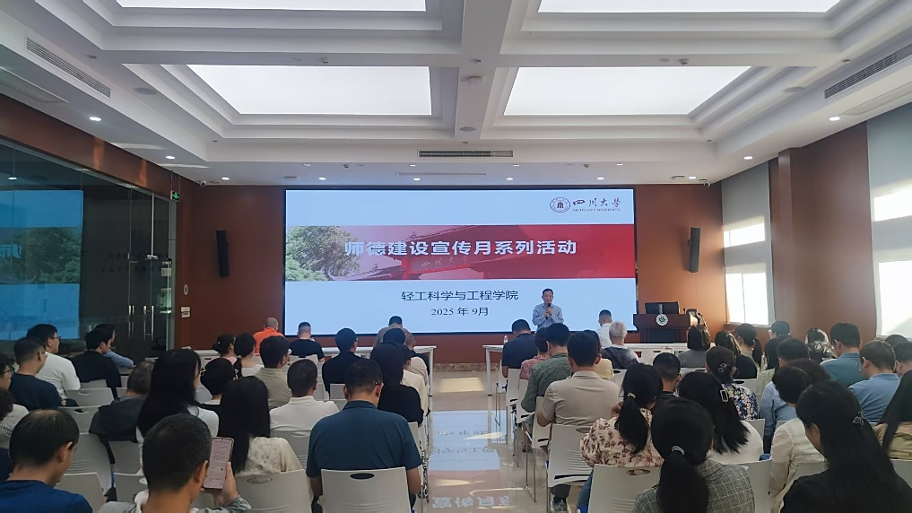 9月19日下午,輕工科學與工程學院在望江校區皮革樓工業互聯網中心開展“以教育家精神鑄魂強師,譜寫教育強國建設華章”主題的師德建設宣傳月活動。學院領導班子及全體教職工參加,活動由學院黨委書記李天富主持。