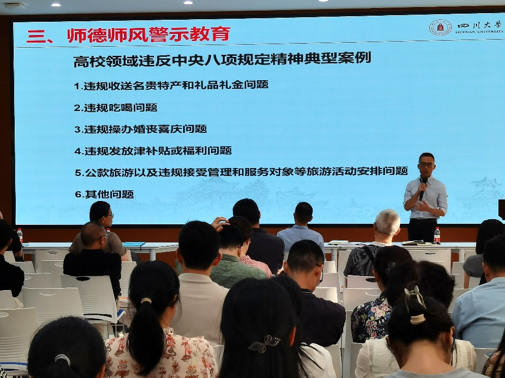 警示教育。學院黨委副書記兼紀委書記姜新通過剖析高校領域違反中央八項規定精神的典型案例,讓全體教職工從中得到警示、明晰行為邊界、心存敬畏之心。