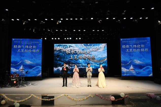 整場晚會以“輕歌飛揚鋪卷”“妙筆細描凝彩”“協心共繪錦程”三大篇章徐徐展開,節目形式多樣、內容豐富,充分展現了輕工學子昂揚向上的精神風貌。樂隊表演點燃全場熱情,舞蹈《Drama》《若夢》盡顯青春活力;相聲《翻譯情書》幽默詼諧,引得笑聲不斷;小品《白雪公主和她的七個大高個》創意十足,融合校園元素,引發共鳴;合唱《那些我尚未知道的美麗》《向光而行》歌聲激昂,傳遞出青年一代的堅定與憧憬;光影劇《光影川大》則以新穎形式展現校園生活點滴,將晚會推向高潮。