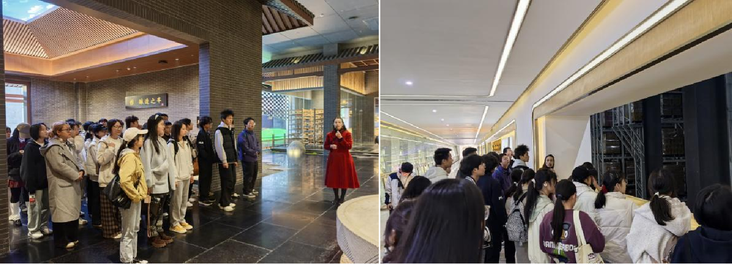 在千禾味業食品股份有限公司,同學們在工作人員的講解下,有序參觀了醬油、食醋等生產線,在古法釀造區、現代生產車間深入了解了傳統釀造工藝與現代技術的創新融合。從傳統陶缸的小批量發酵到現代化的規模生產,從依賴經驗到科技驅動,同學們不僅開闊了眼界,對食品行業傳統技藝的堅守與革新有了更深的了解,生動感受了行業發展的脈搏。